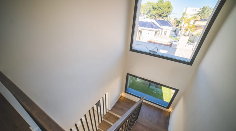 Drzwi i okna przesuwne i/lub składane z aluminium, z podwójnym szybieniem zgodnie ze specyfikacjami technicznymi budynku (CTE), aby ograniczyć przenikanie ciepła i dźwięku z zewnątrz; Zaciemnienie z roletami w sypialniach.